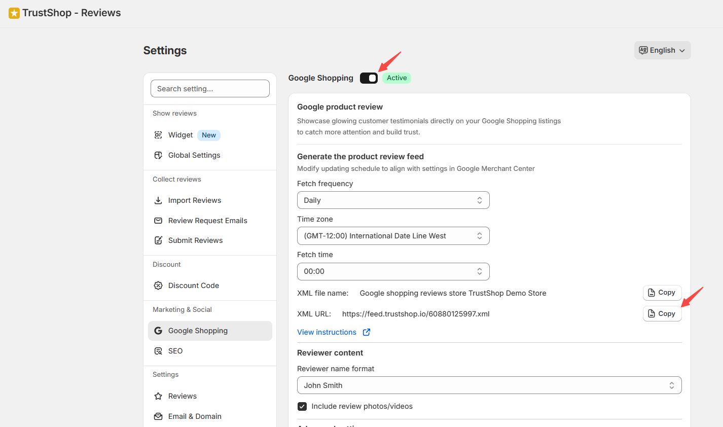 Enable Google Shopping reviews feed in TrustShop