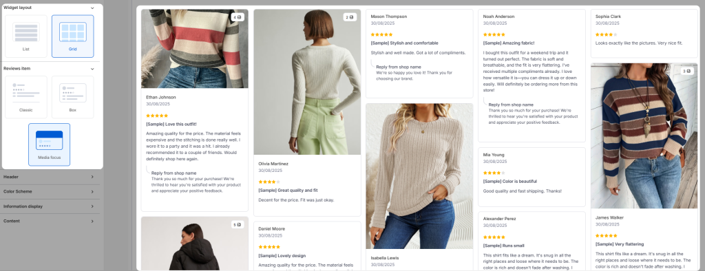 Review Item: Select from Classic, Box, or Media Focus. The new Media Focus option is particularly useful if you want to spotlight visual reviews such as photos and videos.