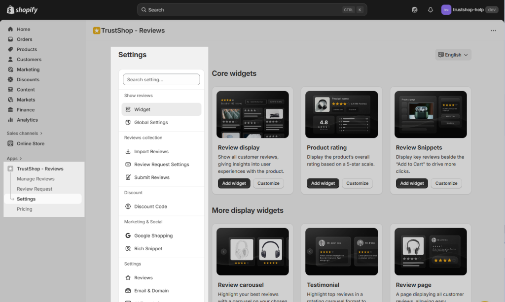 - TrustShop’s demo store now includes a live preview of review widget layouts on the storefront.
