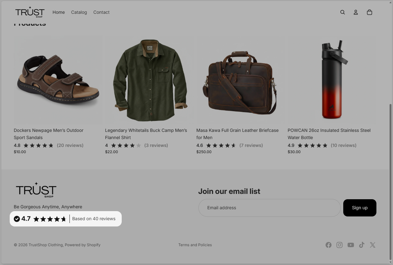 This keeps shoppers focused on products while still giving them quick access to social proof—reducing friction and maintaining buying momentum. Instead of scrolling long product pages or navigating to a separate reviews page, customers can access trust-building content with a single click.